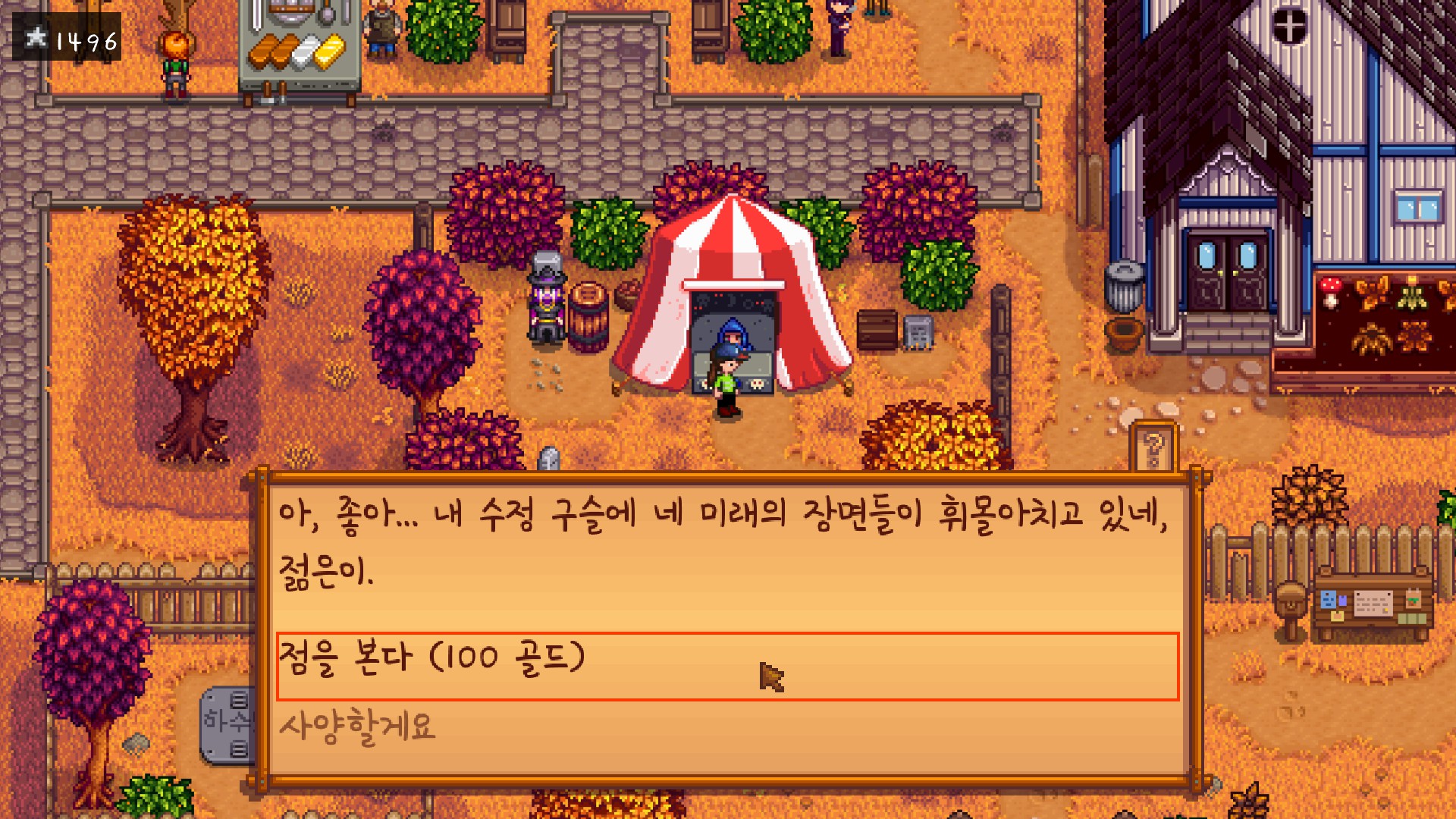 첫 번째로 가장 친한 이웃, 그 다음 가장 친한 결혼 가능 NPC, 마지막으로 농장 평가 (?)를 해준다.