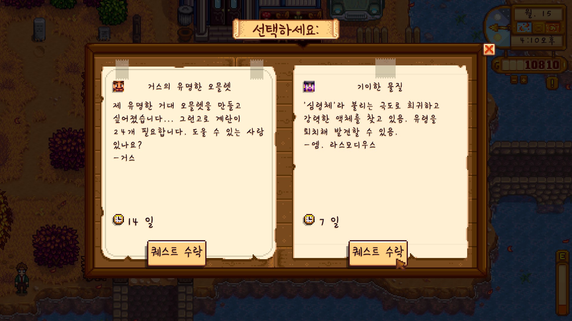 | 스타듀밸리 가을 축제 1/2: 품평회 소개와 공략 (1) | 2024.04.05 |